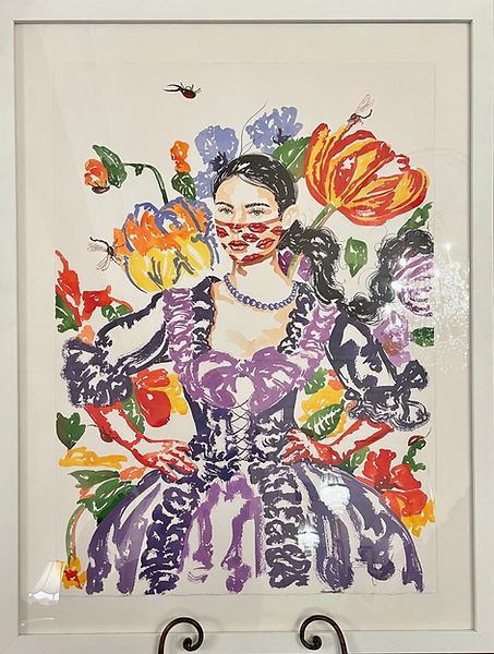 Acrylic painting on paper, Girl with flowers, “Kisses" Produced @ 2021